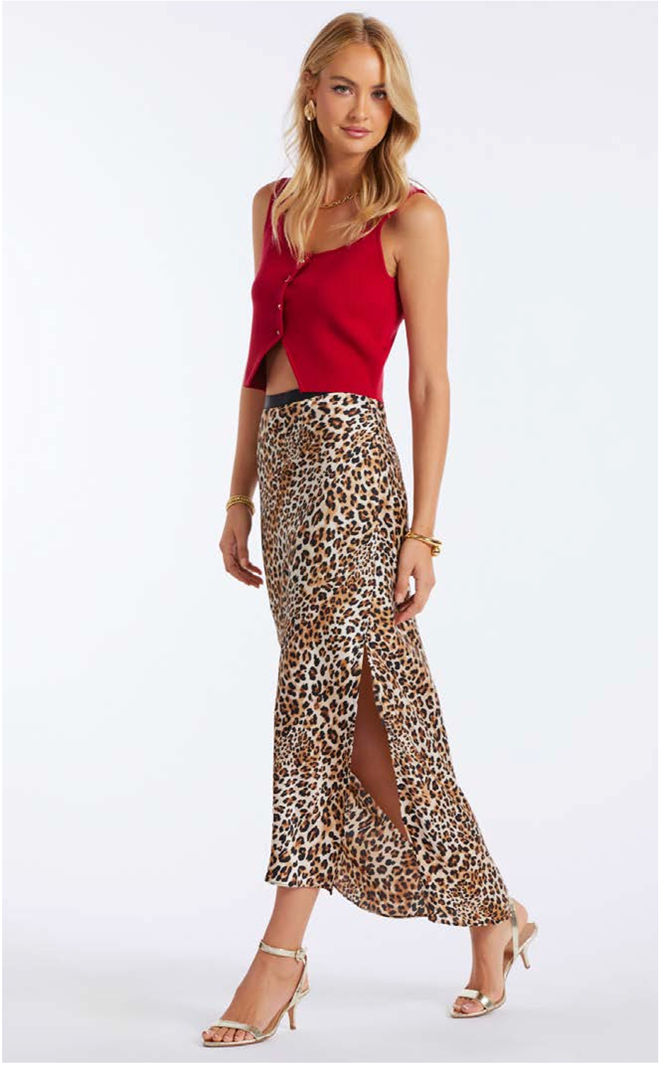 This bias-cut log skirt offers an elegant balance of sophistication and modern style. The classic leopard print adds subtle statement appeal while maintaining a polished, timeless look.
